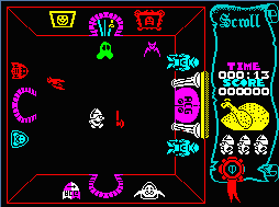 Un autre jeu culte qui a été le premier d’une série de jeux d’arcade/aventure. Vous explorez un labyrinthe en vue par dessus tout en cherchant des objets et des clés vous permettant d’accéder à la sortie et en combattant les monstres. Actuellement ce scénario vous fait sans doute penser à tous les Quake-like, mais étrangement, ce jeu semble moins répétitif que ces jeux récents. Notez que Ultimate Play the Game est devenue Rare Software, célèbre actuellement sur Nintendo pour ses jeux sur console.
