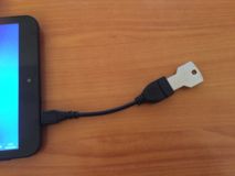 Et super bonne surprise un cable micro-usb / usb OTG qui permet de brancher une clé USB (ou un clavier, ou une souris etc).